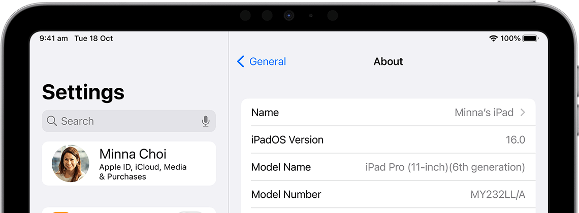 If you’re using iPadOS or iOS 12.2 or later, go to Settings > General > About > Model Name.