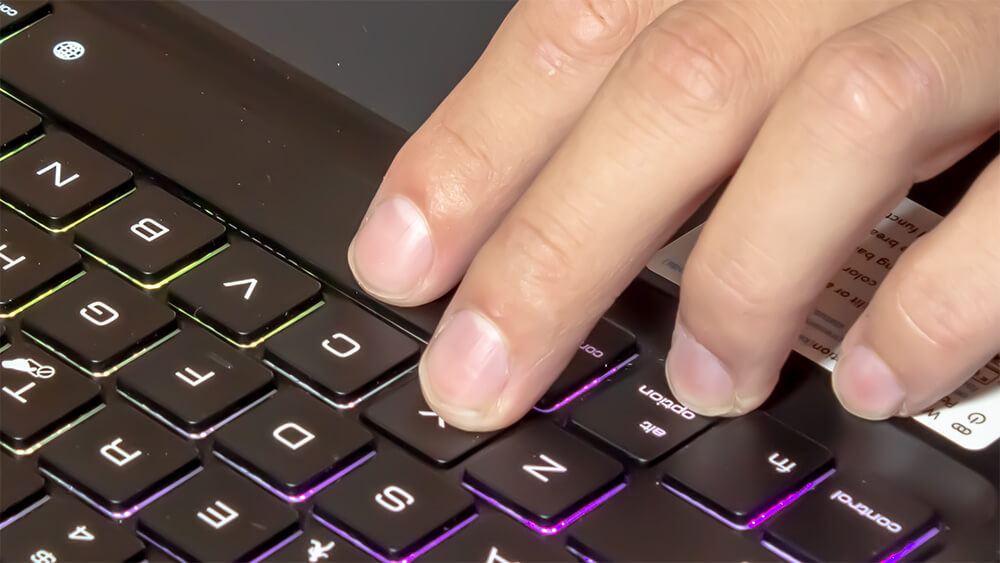 Use the shortcut keys at the top of the keyboard to easily adjust the backlit keys for typing in low-light conditions. The keys stand out from the darkness with 3 levels of brightness and 7 color options to help you stay focused any time, anywhere.